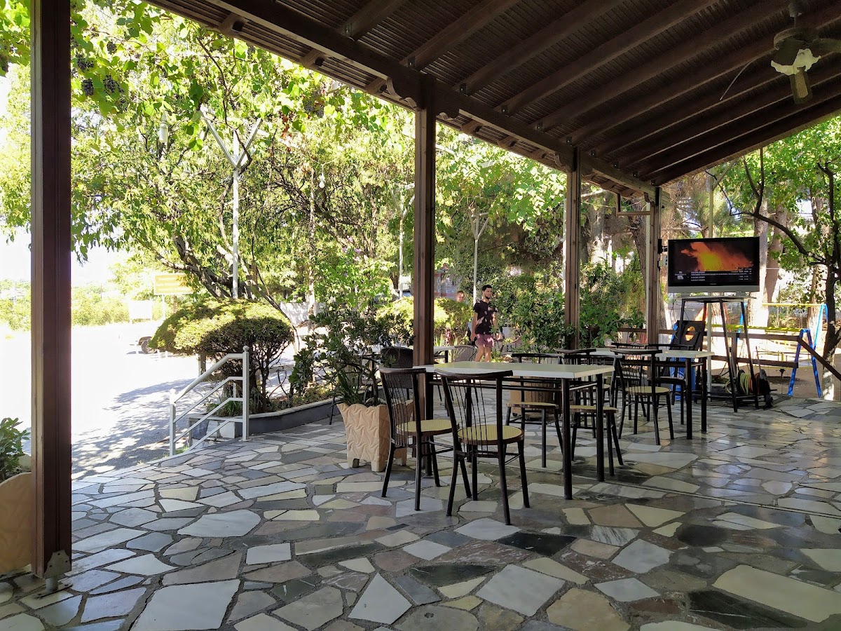 As you step inside, you're welcomed by an ambiance reminiscent of a classic Greek taverna—a blend of rustic charm and homely comfort. The cafe’s decor and comfortable seating create a relaxed environment, perfect for gatherings with friends or family. Whether you are enjoying a sunny afternoon under the shade or a cozy evening, the location is designed to keep you at ease.